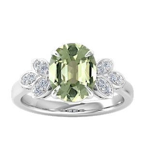 4.09ct Green Tourmaline set in Tri Leaf Nature Diamond Ring