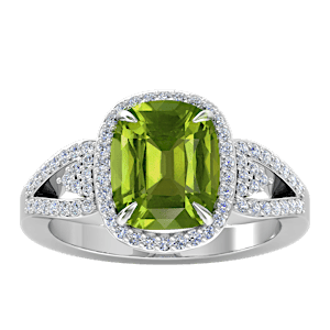 5.68ct Peridot set in Tri Split Shank Halo Diamond Ring