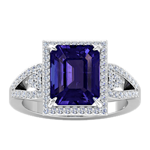 3.14ct Tanzanite set in Tri Split Shank Halo Diamond Ring