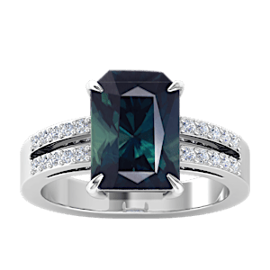 1.69ct Teal Sapphire set in Classic Split Shank Diamond Ring