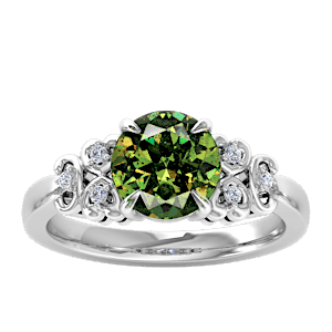 5.36ct Demantoid Garnet set in Triple Heart Diamond Ring