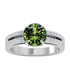 5.12ct Demantoid Garnet set in Classic Split Shank Diamond Ring
