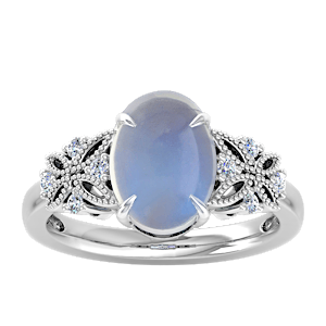 2.55ct Blue Moonstone set in Dual Butterfly Natural Diamond Ring