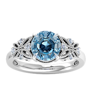 1.83ct Aquamarine set in Dual Butterfly Natural Diamond Ring
