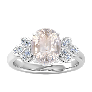 4.42ct Rainbow Moonstone set in Tri Leaf Nature Diamond Ring
