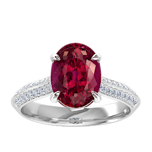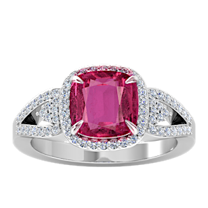 View Designs Instagram1.51ct Rubellite Tourmaline set in Tri Split Shank Halo Diamond Ring