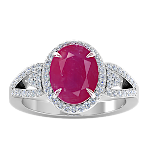 2.89ct Mozambique Ruby set in Tri Split Shank Halo Diamond Ring