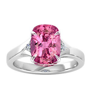 1.39ct Rubellite Tourmaline set in Minimal Three Stone Diamond Ring