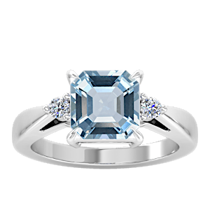 2.94ct Aquamarine set in Simple Three Stone Natural Diamond Ring