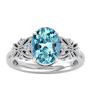 View Designs Instagram4.15ct Aquamarine set in Dual Butterfly Natural Diamond Ring