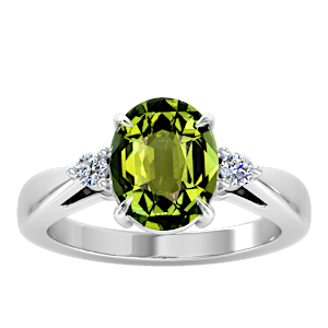 3.08ct Green Tourmaline set in Simple Three Stone Natural Diamond Ring