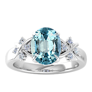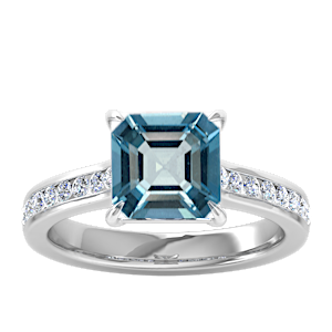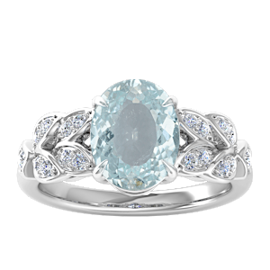 1.84ct Aquamarine set in Simple Three Stone Natural Diamond Ring