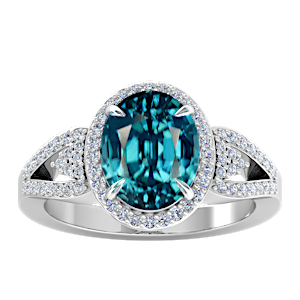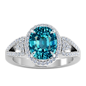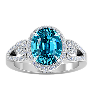 4.24ct Zircon set in Tri Split Shank Halo Diamond Ring