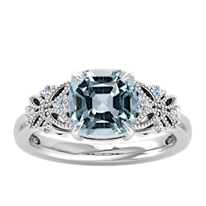 View Designs Instagram3.65ct Aquamarine set in Dual Butterfly Natural Diamond Ring