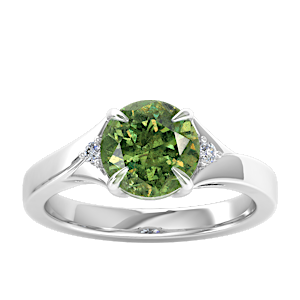 4.28ct Demantoid Garnet set in Minimal Three Stone Diamond Ring