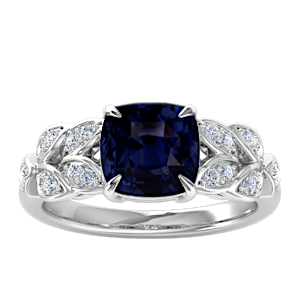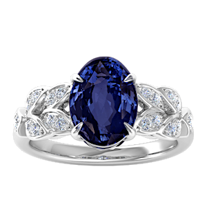 3.50ct Blue Sapphire set in Dual Leaf Vine Diamond Ring