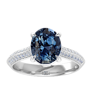 3.06ct Blue Sapphire set in Dual Leaf Vine Diamond Ring