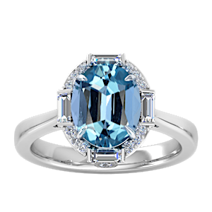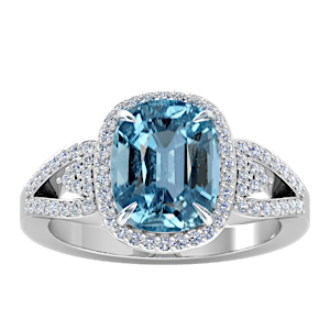 View Designs Instagram4.31ct Aquamarine set in Tri Split Shank Halo Diamond Ring