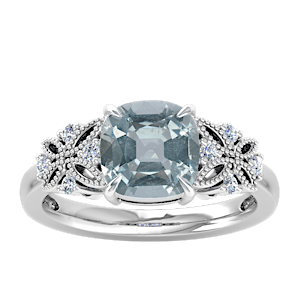 3.49ct Aquamarine set in Dual Butterfly Natural Diamond Ring