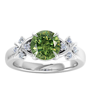 4.28ct Demantoid Garnet set in Entangled Cross Diamond Ring