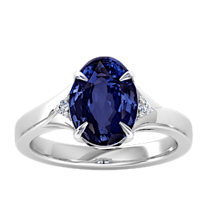 3.50ct Blue Sapphire set in Minimal Three Stone Diamond Ring