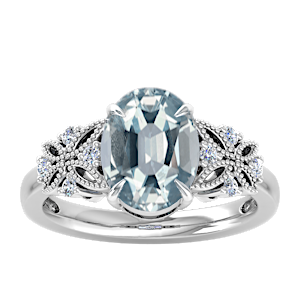 View Designs Instagram2.67ct Aquamarine set in Dual Butterfly Natural Diamond Ring