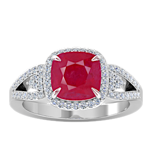 3.07ct Burma Ruby set in Tri Split Shank Halo Diamond Ring