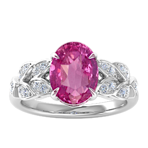 3.00ct Pink Sapphire set in Dual Leaf Vine Diamond Ring