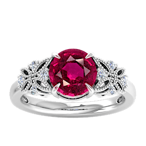 3.10ct Mozambique Ruby set in Vintage Three Stone Diamond Ring