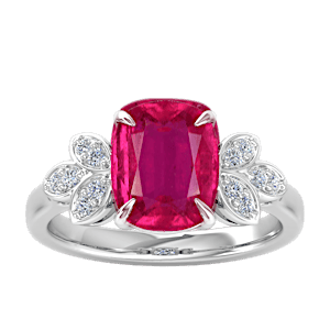 6.15ct Rubellite Tourmaline set in Tri Leaf Nature Diamond Ring