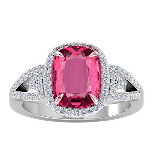 1.69ct Rubellite Tourmaline set in Tri Split Shank Halo Diamond Ring