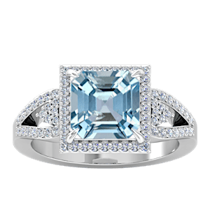 1.47ct Aquamarine set in Tri Split Shank Halo Diamond Ring