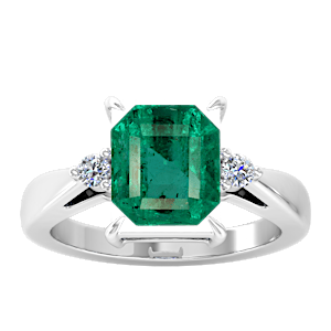 1.80ct Zambian Emerald set in Simple Three Stone Natural Diamond Ring