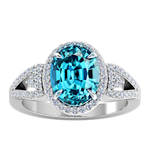 6.03ct Zircon set in Tri Split Shank Halo Diamond Ring