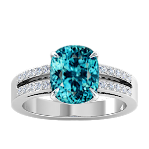 2.16ct Aquamarine set in Classic Split Shank Diamond Ring