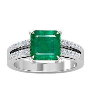 2.50ct Zambian Emerald set in Classic Split Shank Diamond Ring