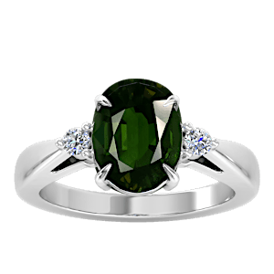 2.68ct Chrome Tourmaline set in Simple Three Stone Natural Diamond Ring