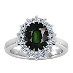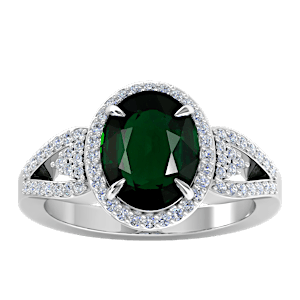 3.94ct Chrome Tourmaline set in Tri Split Shank Halo Diamond Ring