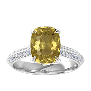 6.41ct Yellow Tourmaline set in Triple Heart Diamond Ring