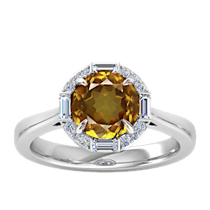 6.17ct Spessartite set in Tri Split Shank Halo Diamond Ring