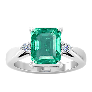 1.17ct Zambian Emerald set in Simple Three Stone Natural Diamond Ring