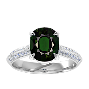 1.08ct Cuprian Tourmaline set in Dual Leaf Vine Diamond Ring