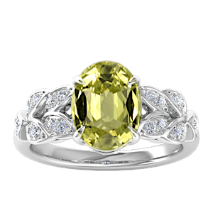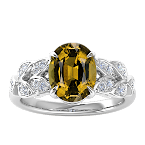 4.76ct Yellow Tourmaline set in Dual Leaf Vine Diamond Ring