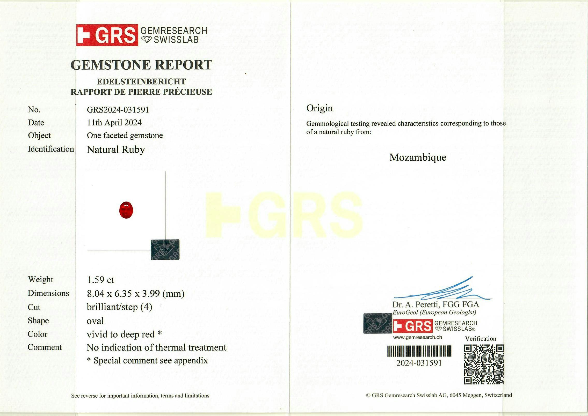 Loose Mozambique Ruby Gemstone GRS Certified Mozambique Ruby