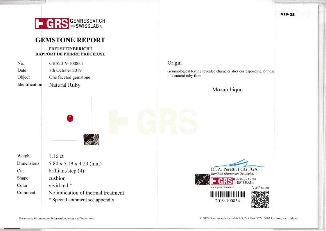 Loose Mozambique Ruby Gemstone GRS Certified Mozambique Ruby