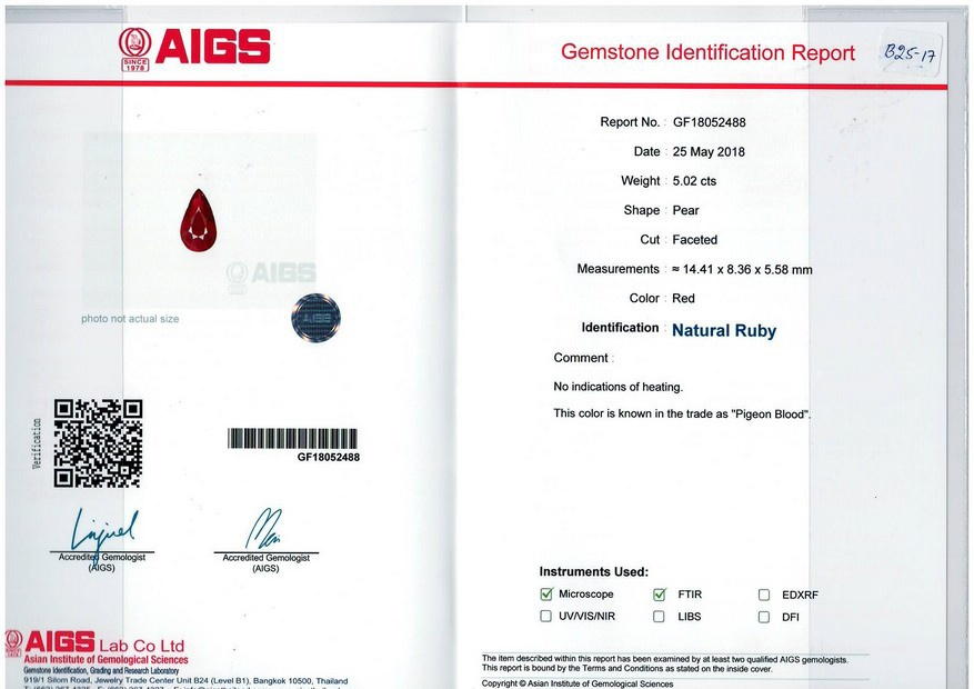 Loose Mozambique Ruby Gemstone AIGS Certified Mozambique Ruby