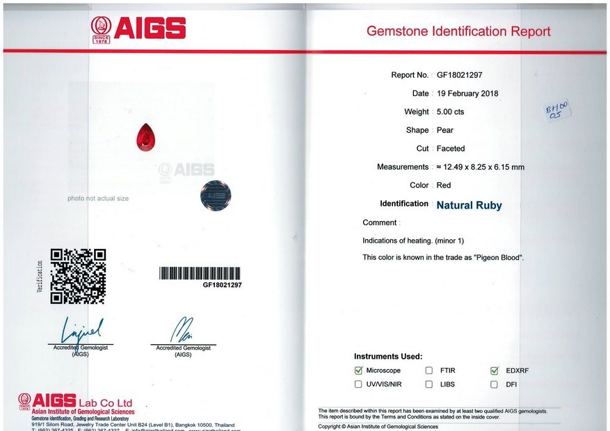 Loose Mozambique Ruby Gemstone AIGS Certified Mozambique Ruby