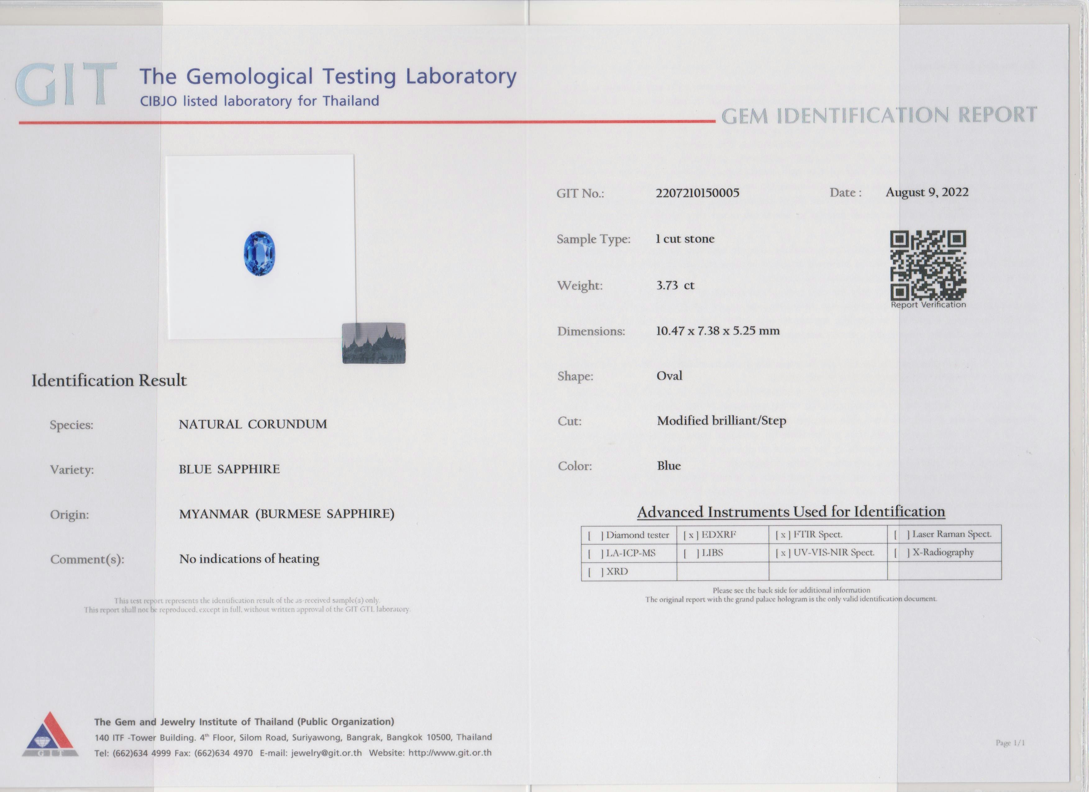 Loose Blue Sapphire Gemstone GIT Certified Blue Sapphire