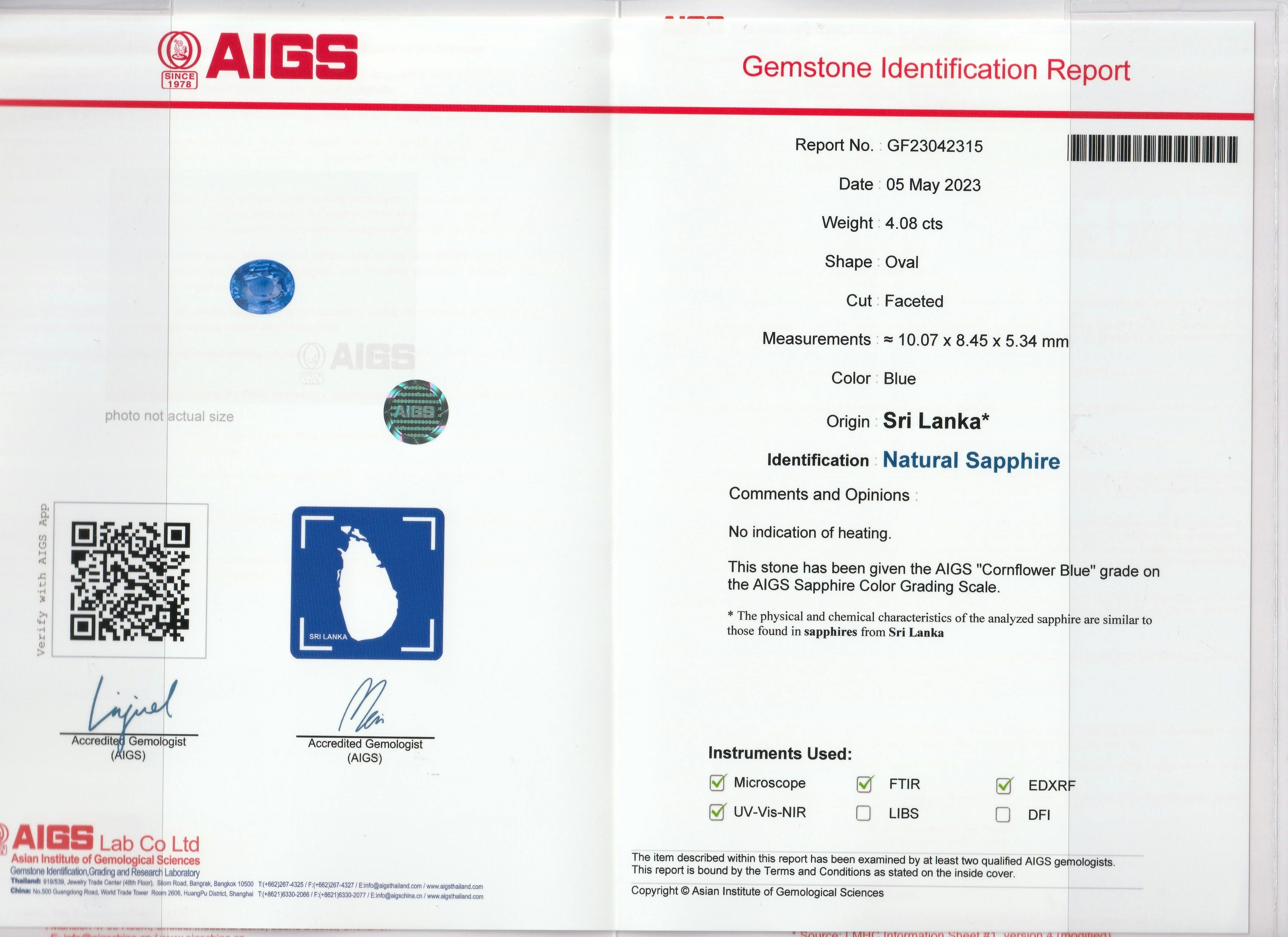 Loose Blue Sapphire Gemstone AIGS Certified Blue Sapphire