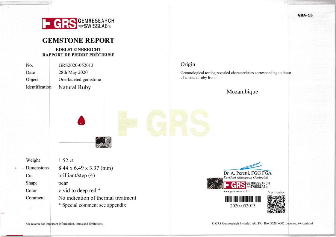 Loose Mozambique Ruby Gemstone GRS Certified Mozambique Ruby